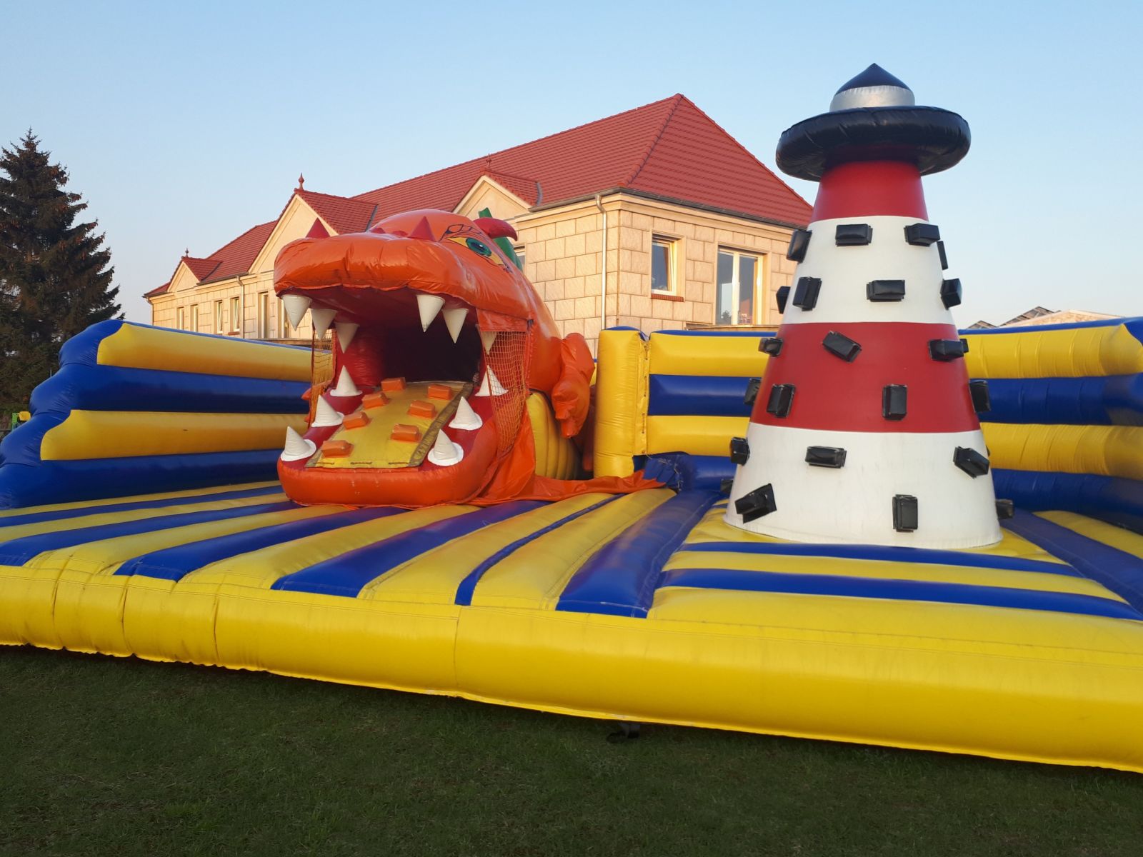 schöne Hüpfburg Schnappi und Kletterleuchtturm